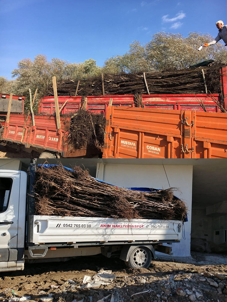 2021 kasım ayı itibari ile dinlenme dönemine geçip yapraklarını kendi kendine döken göz aşı açık köklü ceviz fidanı çeşitleri (chandler, fernor, fernette, franquette) tarlalarımızdan sökülüp teslimatlarına başlanılmıştır.